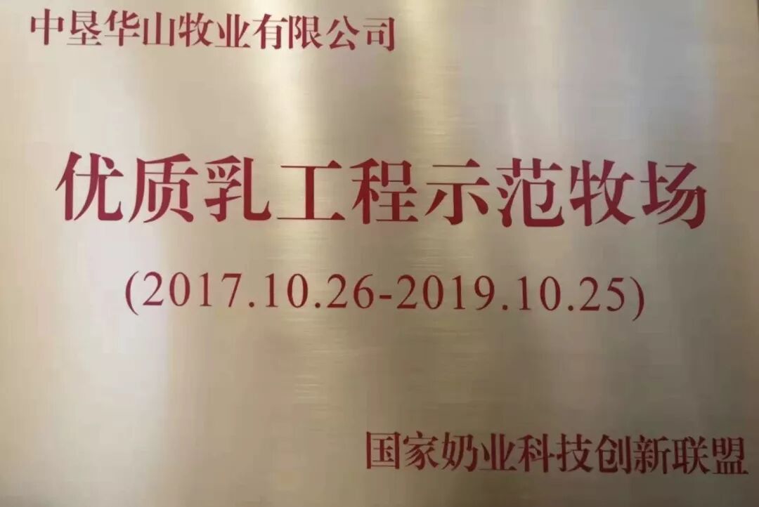 ▲中垦华山牧乳业荣获优质乳工程示范工厂、中垦华山牧业荣获优质乳工程示范牧场。