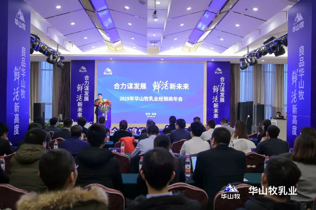 1月14日,华山牧乳业以“合力谋发展,鲜活新未来”为主题的2019华山牧乳业经销商年会在渭南桃园美莎酒店隆重召开。华山牧乳业股份有限公司副总经理贾攀、黄锐等公司领导以及来自全国各地的经销商伙伴和合作伙伴、咨询专家等齐聚一堂为华山牧2019年新发展献计献策。重庆农投集团总经理王千六、中垦乳业董事长胡家彬先生、中垦乳业股份有限公司总经理邱太明等集团领导和各兄弟公司领导及团队莅临大会现场。