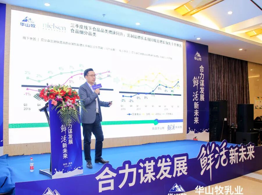▲2019华山牧乳业经销商年会 ▲集团领导和各兄弟公司领导及团队莅临大会现场 2018年,华山牧乳业作为西北地区首家也是目前唯一一家通过优质乳工程的乳业企业,践行“良品华山牧、鲜活新高度”的品牌宣言,找准品牌定位、重构营销体系、优化产品结构、严控质量标准、精耕市场渠道,销售收入同比上涨100%。作为中垦乳业布局全国的重要业务组团,华山牧乳业正式扎根西北,正在肩负起践行农垦奶业精神、提升西北乳品行业标准的历史使命,充分发挥中国乳业国家队、排头兵的重要作用。 ▲华山牧产品(向上滑动查看更多) 在上午的经销商培训会议上,尼尔森中国消费品研究事业部总监骆琦先生、北京紫珊整合营销咨询有限公司总经理张宇征先生、蛋解创业创始合伙人韩雨廷先生、普华永道商务咨询(上海)有限公司高级经理林伟先生,分别就目前乳制品市场的整体情况进行了分享,并解读了未来发展方向。 ▲嘉宾分享(向上滑动查看更多) 在下午的会议上,华山牧乳业对2018年做了整体回顾,公布了2019年的销售策略,同时发布了2019年营销规划。 ▲华山牧乳业副总经理贾攀在会上分享 ▲华山牧乳业销售管理部经理张涛解读2019年市场支持政策 ▲华山牧乳业市场部经理康晶晶做2019年市场营销概述 2019将是华山牧厚积薄发的一年,新年伊始,华山牧取得了新零售渠道的重大突破!经过近半年的磋商及考察,最终达成华山牧品牌乳制品在盒马鲜生的全系分销。同时,华山牧乳业成为盒马鲜生自有品牌“日日鲜巴氏鲜奶”在陕西地区的唯一指定委托加工方,双方达成了全方位战略合作!会上,双方签署了战略合作协议。 ▲华山牧乳业与盒马鲜生签署战略合作协议 ▲盒马鲜生(陕西)生鲜采购总监王纲先生 ▲华山牧乳业有限公司副总经理黄锐先生 会上,华山牧2018年度优秀经销商代表分享了他们的生意心得。 ▲优秀经销商分享(向上滑动查看更多) 随后,康美包(苏州)有限公司亚太北区市场总监丁港先生和普华永道商务咨询(上海)有限公司高级合伙人曹文静女士先后做了精彩分享。 ▲康美包(苏州)有限公司亚太北区市场总监丁港先生 ▲普华永道商务咨询(上海)有限公司高级合伙人曹文静女士 最后,重庆市农业投资集团党委副书记、总经理王千六先生和中垦乳业股份有限公司总经理邱太明先生分别发言,寄语华山牧2019新未来。 ▲重庆市农业投资集团总经理王千六先生 ▲中垦乳业总经理邱太明先生 展望2019,华山牧乳业将始终遵循集团新时期发展战略体系,围绕“四个一切”的战略宗旨,实施“鲜活”产品战略,怀揣成为西北地区低温乳品行业领跑者、优质乳品供应商的初心不断前进。